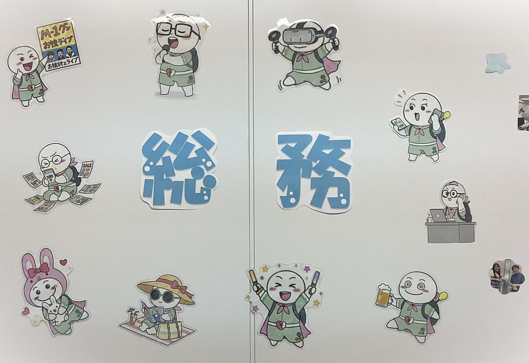 昨年の4月に作られた総務チームは、メンバーをイメージしたキャラクターを飾っていました。それぞれ、趣味や働いている様子をうまく絵に起こしてあり注目を集めていました。