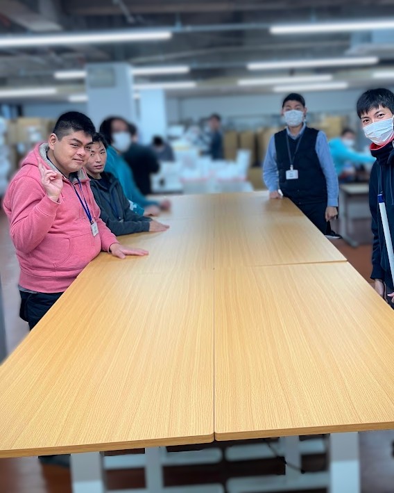 新しいデスクは、6台を連結して使用する「完璧な高さの作業台」として機能しています。